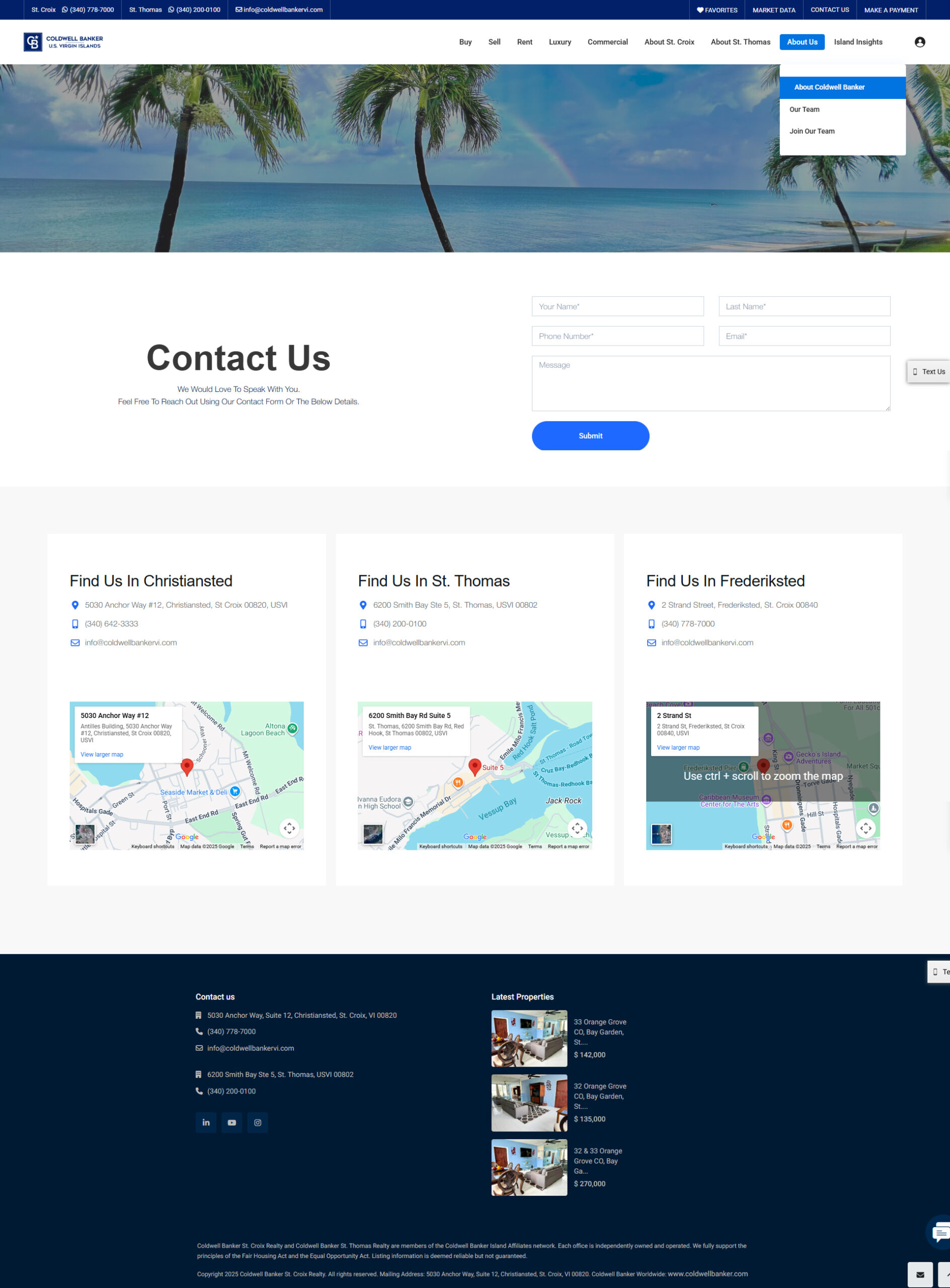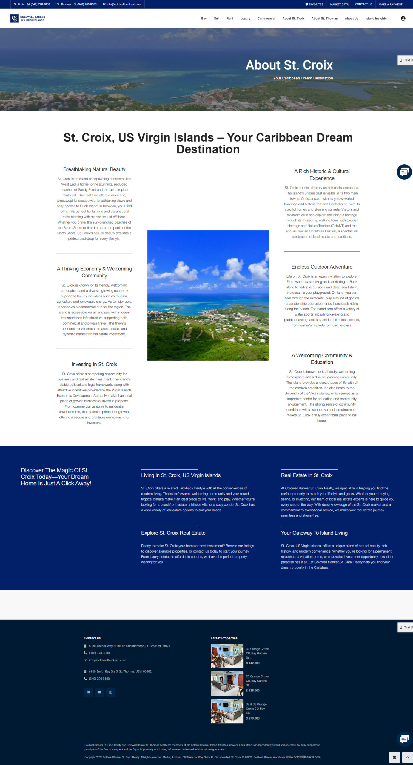 Van Island Web delivered a modern, high-performance website that aligns seamlessly with Coldwell Banker USVI’s established brand standards while elevating their digital presence in a competitive real estate market.