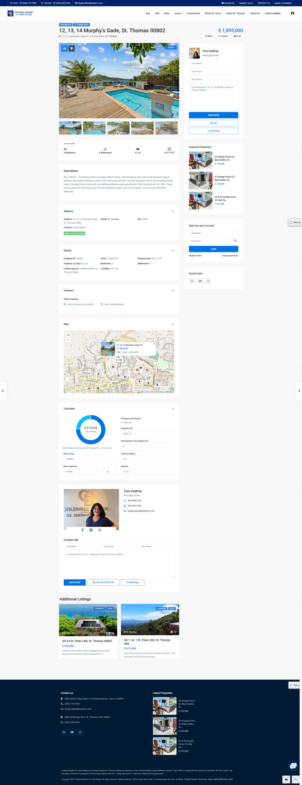 Project Overview: Create a website for Coldwell Banker US Virgin Islands to replace their aging, out-of-date website. Their site needed to serve many agents, and provide automatic listing imports from their MLS to show possible clients up-to-date listings and connect possible buyers with their agents.